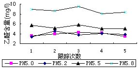 圖5 不同糖化PH下成品酒乙醛含量比較