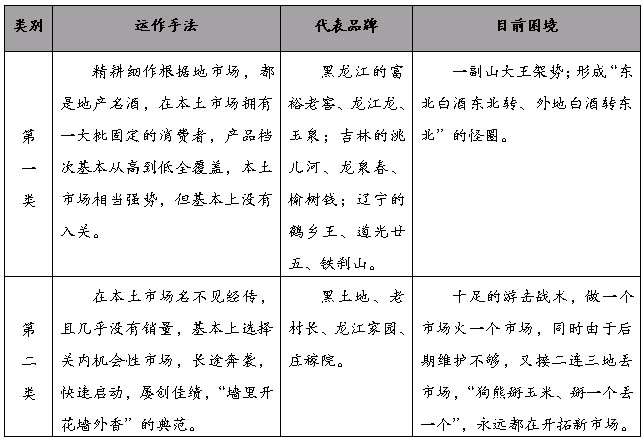 這兩類品牌都是東北酒的代表品牌,第一類走不出去,第二類攻下來守不住。因此,東北酒要突破自己的營銷瓶頸,還需要根據各自的操作特點有針對性地進行調整。