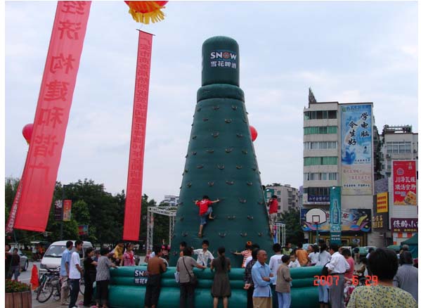 時(shí)尚的文藝演出、幽默搞笑的小品、新穎的開(kāi)幕式現(xiàn)場(chǎng),再加上其樂(lè)無(wú)窮的慢騎自行車、定點(diǎn)投籃、瘋狂足球射門以及勇闖天涯氣模攀巖等互動(dòng)游樂(lè)活動(dòng)項(xiàng)目,吸引了許多人參與其中,他們也通過(guò)參與這些頗具挑戰(zhàn)性的競(jìng)技項(xiàng)目,體驗(yàn)到了雪花啤酒“勇闖天涯”的自我挑戰(zhàn)精神。