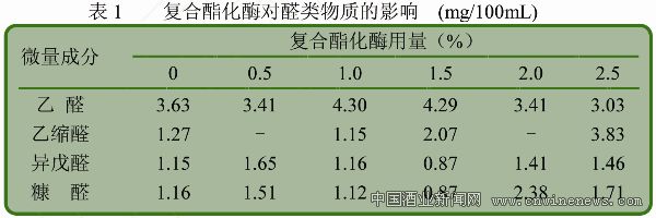 2 .1 復(fù)合酯化酶對基酒中醛類物質(zhì)生成的影響