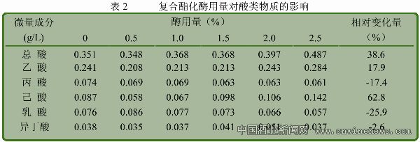 2 .2 復(fù)合酯化酶對基酒中酸類物質(zhì)生成的影響