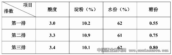 4.1試樣一連續(xù)三排取酒后,按照產(chǎn)量、質(zhì)量、感官品評三項標(biāo)準進行綜合判定,具體結(jié)果參見表5。