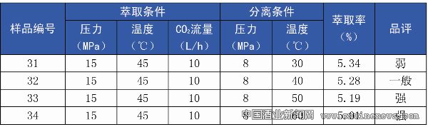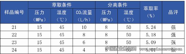通過(guò)以上試驗(yàn)可以看出,3號(hào)樣雖然萃取率略低于2號(hào)樣,但其風(fēng)味更佳,所以萃取溫度選為45℃。