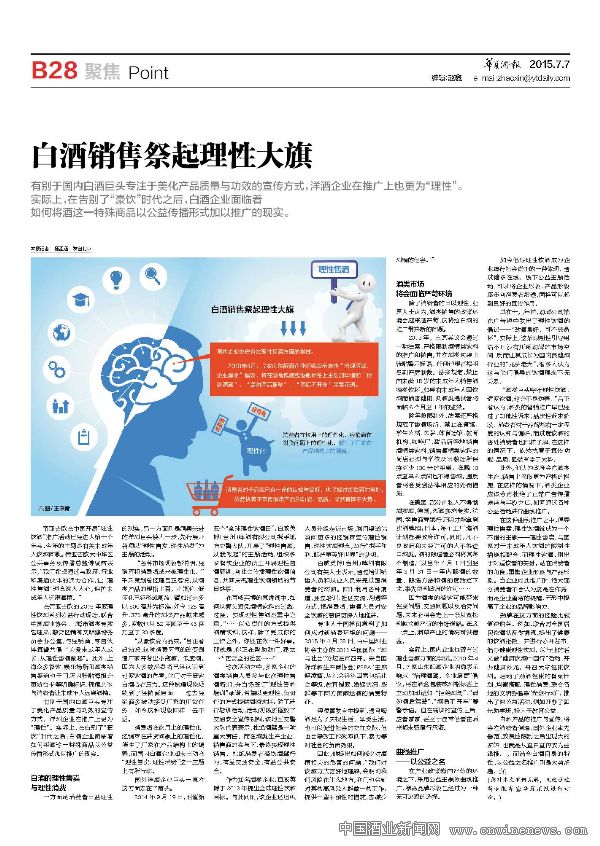 有別于國(guó)內(nèi)白酒巨頭專注于美化產(chǎn)品質(zhì)量與功效的宣傳方式,洋酒企業(yè)在推廣上更為“理性”。實(shí)際上,在告別了“豪飲”時(shí)代之后,白酒企業(yè)面臨著如何將酒這一特殊商品以公益?zhèn)鞑バ问郊右酝茝V的現(xiàn)實(shí)。