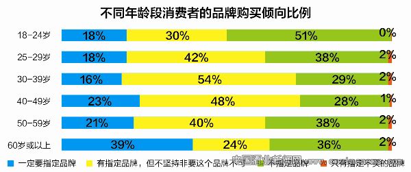 該項(xiàng)消費(fèi)者滿意度調(diào)查報(bào)告顯示:從市場消費(fèi)特征看,年齡偏大的被訪者滿意度相對(duì)較高,而年輕的被訪者對(duì)香味、口味和口感的個(gè)性化需求更多,因此略顯挑剔。30歲以下的消費(fèi)者不容易產(chǎn)生明顯的品牌購買傾向;25歲以下的消費(fèi)者(90后)中有半數(shù)之多的人在購買時(shí)沒有固定的品牌傾向,這兩個(gè)比例均高于其他年齡段人群;隨著年齡的增長,超過40歲的人群中,購買時(shí)只鐘愛并選擇單一品牌啤酒的比例上升,60歲或以上的消費(fèi)者中指定啤酒品牌的比例最高。