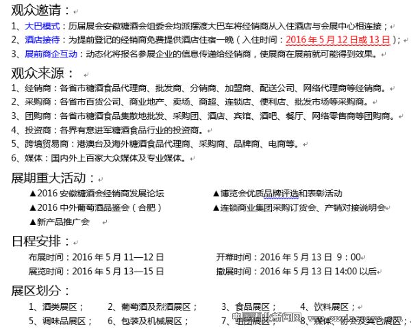中國(安徽)國際糖酒食品交易會(簡稱CAWFF)迄今已成功舉辦11屆,據統計,累計展出面積超過28萬平方米,累計參展企業數達到14000余家,共吸引觀眾42余萬人次,貿易成交總額達二七十余億元,并成功舉辦了多場高峰論壇、主題活動,其規模、影響力名列全國糖酒食品行業展前茅,為推動我國糖酒行業的發展做出了巨大的貢獻。