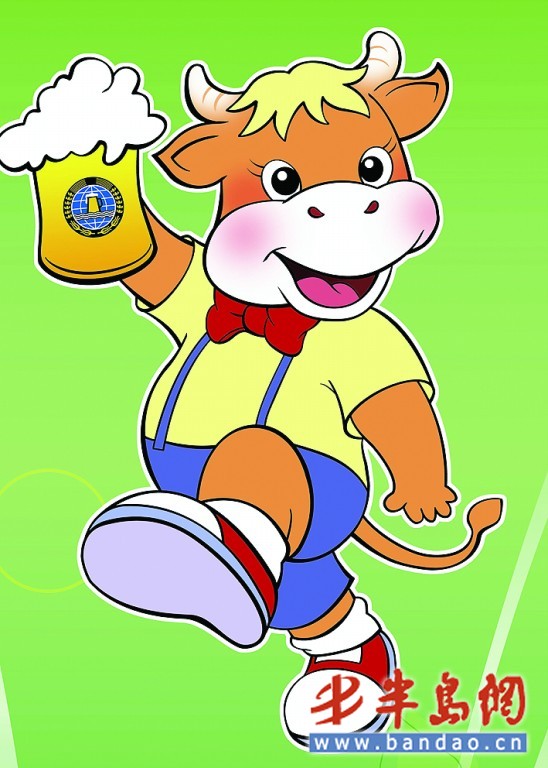 為了喜迎國慶60周年和第十九屆啤酒節的舉行,吉祥物取名“慶慶”。因此,在形象刻畫上“慶慶”體現牛的精、氣、神,張揚“牛氣沖天”,“初生牛犢不怕虎”的天性。記者看到,小黃牛身著黃上衣,下穿藍短褲,色彩亮麗,大紅色的領結增添了啤酒節的喜慶節日氣氛。“慶慶”手舉美酒,健步向前的姿態傳達了“青島與世界干杯”的主題。