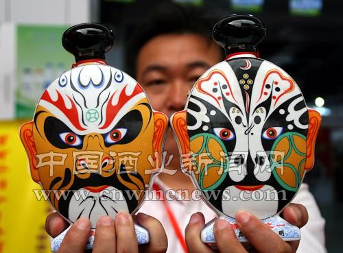 8月21日,在邯鄲舉行的糖酒副食品展銷洽談會上,一名參會人員觀看展出的“負荊請罪”(將相和)瓶酒。