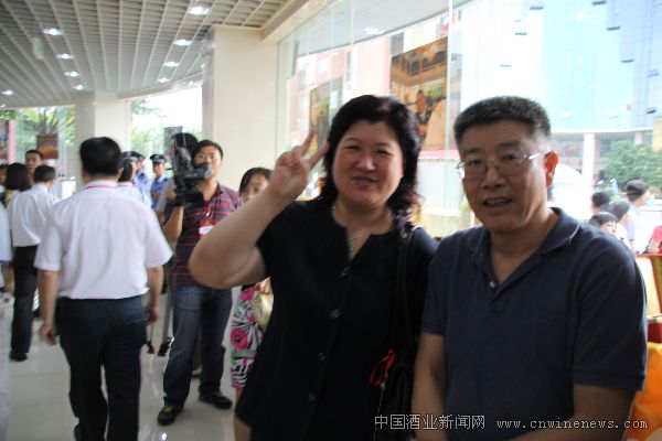 廣東省酒類檢測中心副主任、酒類行業協會常務副會長趙紅向記者揮手慶祝酒博會成功