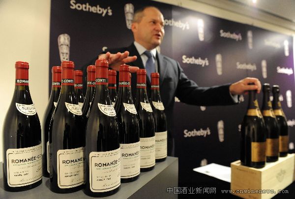 香港蘇富比拍賣(mài)行于1月14日舉行2012年首場(chǎng)洋酒拍賣(mài),參拍的9文章來(lái)源華夏酒報(bào)80多件佳釀估價(jià)5000萬(wàn)至7000萬(wàn)港元。 圖為工作人員在傳媒預(yù)展上展示本次拍賣(mài)拍品。
