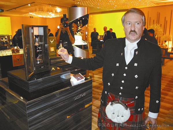 品鑒會上,來自大摩(Dalmore)的調酒大師Richard Paterson一身蘇格蘭裝扮,熱情洋溢地講解威士忌文化。“品味威士忌,要尊重、呵護,像紳士對待美女。聞香、啜飲、迂回、入口,才能體會到生命之水的真諦。”這番對威士忌的熱忱給來賓留下深刻的印象。