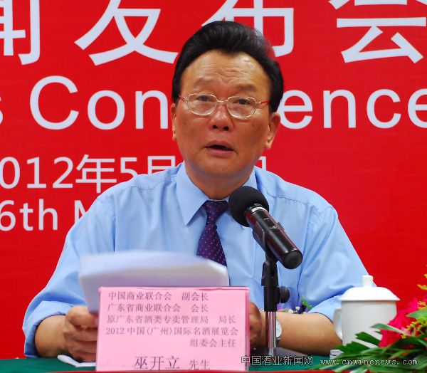 中國商業聯合會副會長、廣東省商業聯合會會長、原廣東省酒類專賣管理局局長、名酒展組委會主任巫開立在新聞發布會致辭中說:“我們舉辦廣州國際名酒展的基本宗旨是,打造中外酒飲業交流與合作的平臺,促進全國酒飲業的國際合作,滿足全國特別是廣東消費者對國際名酒和酒文化的多樣化需求,推進放心酒工程的實施。與此同時,根據中國市場的需求,依托名酒展的豐富資源,與各國政府和行業協會聯合舉辦各種類型的進口商品專業展,促進全國進出口業務的協調發展。我們高興地看到,在國家商務部、廣東省外經貿廳、經信委等部門、中國各地酒類流通行業協會,以及葡萄酒主產國相關政府部門、酒類行業協會和廣大酒商的大力支持下,經過8年多的發展,廣州國際名酒展已經得到了國內外同行的高度認可,目前我們已經和全球七十二個葡萄酒主產國的酒類主管部門及行業協會建立了友好合作關系,與全球超過五十萬家酒商建立了業務聯系,形成了覆蓋中國32個省市擁有超過十三萬家酒類專業經銷商的中國最大的酒品銷售網絡……”