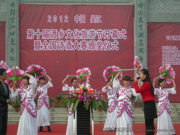 以活動為推力、以詩酒為載體、以品牌為主角,向來自四面八方的賓朋展現酒鄉桃源十年來釀酒工業、旅行工業轉型晉級、跨越發展的生機與魅力。12月8日,“水韻吳江·詩酒桃源”2012中國吳江第十屆酒鄉文化旅游節開幕式暨全國詩酒大賽頒獎儀式在桃源鎮舉行。全國政協委員、中國詩酒文化協會會長蔣秋霞,中國詩酒文化協會榮譽會長陳琪林,中國食品科學技術學會黃酒分會理事長毛照顯、中國酒業協會黃酒分會秘書長沈振昌、上海酒類專賣局局長盧榮華及江蘇蘇州市、吳江區領導出席會議并剪彩。