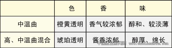 綜上所述,可以看出采用高、中溫曲混合發(fā)酵技術(shù)生產(chǎn)的黃酒在發(fā)酵過(guò)程中,既保持了中溫曲糖化力較高、發(fā)酵力持久的優(yōu)勢(shì),又融合了高溫曲產(chǎn)生醬香的優(yōu)勢(shì),從而使黃酒的品味從根本上得到了完整的改善,而使產(chǎn)品具備了入口飽滿、醬香濃郁、回味悠長(zhǎng)的特點(diǎn)。