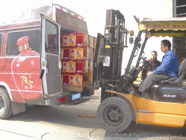 年末歲首,浙江紹興縣唐宋酒業有限公司迎來了一年銷售最旺的季節,來企業訂購產品的客商絡繹不絕。隨著品牌影響力的不斷提升,唐宋酒走出了本地區域,文章來源華夏酒報遠銷安徽、上海、江蘇、山東等地,成為異軍突起的全國黃酒品牌新生代。圖為工人們正在緊張地裝酒運往各地。