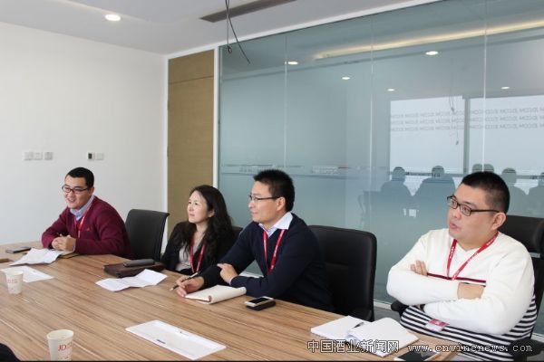 2015年11月30日,國美酒業集團董事長武玉杰一行在京訪問京東集團總部,京東集團副總裁、消費品事業部總裁馮軼,京東中外名酒業務組經理李碩,京東中外名酒經理陳松峰,白酒開放平臺總監張泰誠等熱情接待,雙方根據上次洽談成果達成深度合作共識。