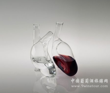 在設(shè)計(jì)師們天馬行空的想象中,紅酒包裝瓶早已擺脫了常見的形狀,這款心臟酒瓶就是諸多個(gè)性設(shè)計(jì)中極具代表性的一款。它是由兩只酒瓶組成的,分別代表了人體的左、右心室。一旦注滿了紅酒,看起來就像是心臟在鮮活地跳動(dòng),是不是很怪異呢?