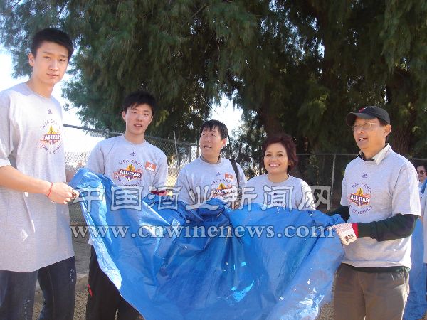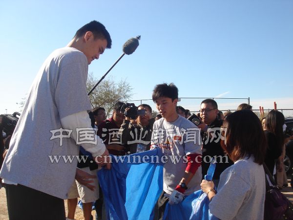 《華夏酒報》記者看到,在Cesar Chavez社區學校,來自NBA的這些“大牌義工”們起勁的干起了粗活,挖沙坑,填土,栽樹。星腕云集的勞動場面熱火朝天,一組由3名中國帥哥組成的“勞動小組”特別搶眼。姚明、孫悅與帶著“北川夢想”而來的“青啤男孩”被分配搬運木屑添沙坑的工作。