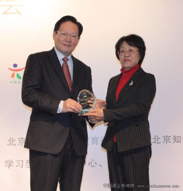 青啤公司榮膺“中國最受尊敬的知識型組織卓越大獎“公司副總裁姜宏女士(右)代表公司接受頒獎。