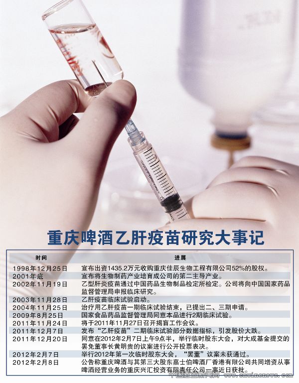重慶啤酒公司的乙肝疫苗故事始于1998年,上市剛滿一年的重慶啤酒在該年10月底收購了重慶佳辰生物工程有限公司52%的股權(quán),當(dāng)時重慶啤酒的股價僅為13元。佳辰生物對外聲稱依托第三軍醫(yī)大學(xué)的科研平臺,自上世紀(jì)90年代開始就已著手研發(fā)治療乙肝的新藥。