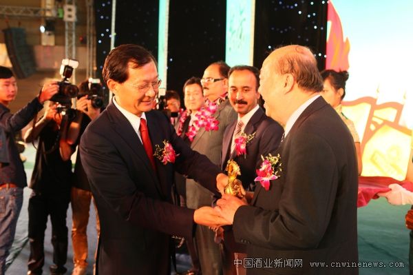 青啤公司總裁孫明波為青島啤酒海外經(jīng)銷商伙伴頒獎