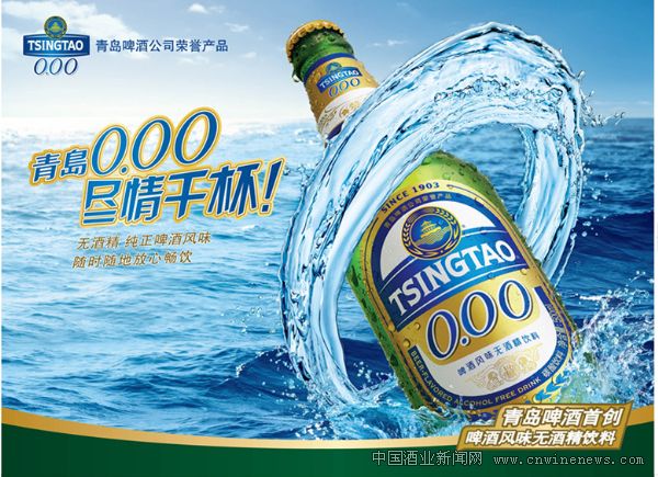 還在為應酬喝酒緊鎖眉頭?還在為駕車不能暢飲而郁郁寡歡?其實在許多發達國家,比如日本,一股零酒精啤酒的熱潮正在掀起,開車與“喝酒”已不再成為困擾。而現在,這種“零酒精”浪潮已來到你身邊,全新上市的青島0.00,秉承青島啤酒百年品質,傾情呈獻全國第一款百分百無酒精啤酒風味飲料。你也無需再以茶代酒,更可以開懷干杯,為您打通商務應酬的壁壘,讓你輕松融入酒桌文化,盡享暢飲樂趣。濃郁的麥香,純正的口感,更含時尚健康的膳食纖維,保持青島啤酒一貫純正風味的同時,還能幫助消化,讓你隨時隨地暢快共飲。