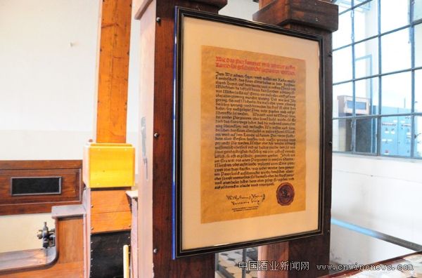 博物館內(nèi)還張貼著1516年巴伐利亞公國(guó)威廉四世大公頒布的《啤酒純釀法》,這份法令規(guī)定啤酒只能以大麥芽、啤酒花、水以及酵母制作,這是全世界最早關(guān)于啤酒的法令,后來(lái)德國(guó)純正啤酒之所以聞名于全世界很大程度上歸結(jié)于此,而青島啤酒奧古特正是嚴(yán)格遵循德意志釀酒寶典,才能成就德系啤酒的尊貴血統(tǒng)和純正口感。