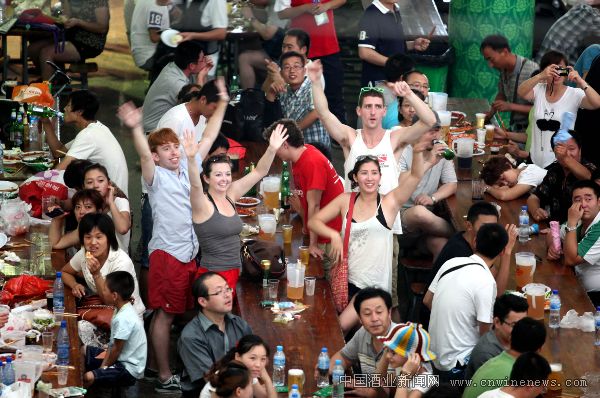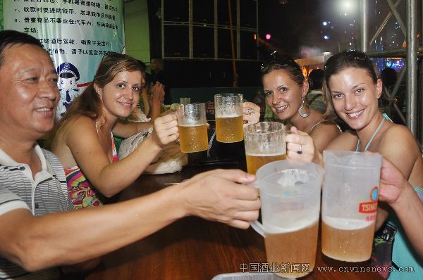 “青啤大棚一貫都是最火爆的,因為很多人都是沖著青啤來的,我們也是等了半天,才找到這個位子,結果發現這兩個外國朋友也轉悠半天沒找到地方,就拉來一起喝?!逼渲幸粋€中國小伙文章來源中國酒業新聞網子告訴記者,他叫劉鵬程,是地道的青島人,今天帶著三個四川朋友特意來喝青啤,感受啤酒節的魅力,“開始大家都不知道對方在說什么,我就給他倒了一杯青島啤酒做了個干杯的動作,兩個老外馬上就明白了,爽快的一飲而盡,直豎大拇指。”說起他和外國朋友的認識經過,劉鵬程非常得意,“青啤就是我們共同的語言,不多說一個字,情義都在酒里?!?/P>