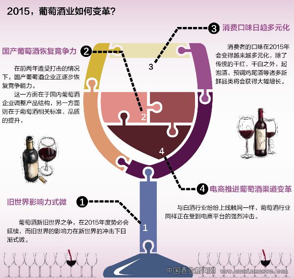 在2015年度,這種之前就已經(jīng)體現(xiàn)出來的變革在葡萄酒領(lǐng)域還將持續(xù),產(chǎn)品定位、不同產(chǎn)地銷售占比、消費(fèi)口味、渠道等等,都將呈現(xiàn)出全方位、多元化的變革趨勢。