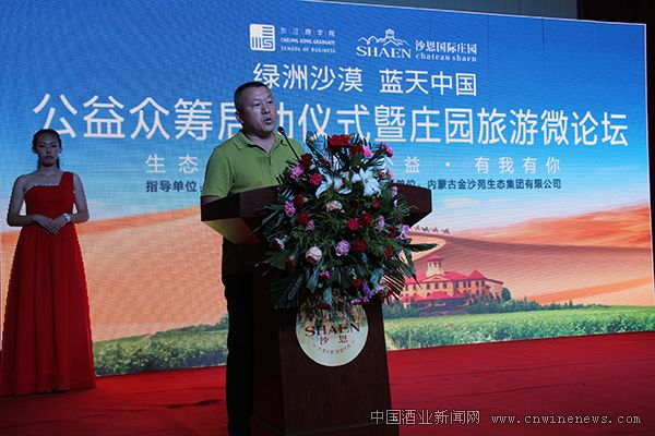 綠洲沙漠 藍(lán)天中國--公益眾籌”項(xiàng)目發(fā)起人和總策劃人是沙恩國際莊園董事總裁金煒。在啟動(dòng)儀式上,金總向各位嘉賓就“綠洲沙漠 藍(lán)天中國--公益眾籌”項(xiàng)目做了詳細(xì)的介紹。