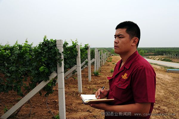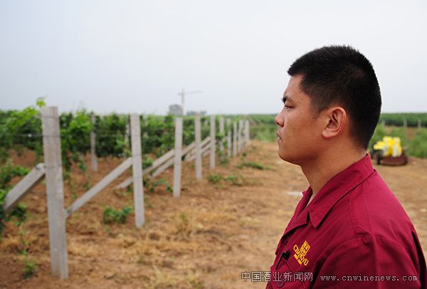 圖2:今年30歲的楊亞超是朱橋基地的管理員,是西北農(nóng)林科技大學(xué)葡萄酒學(xué)院碩士研究生,在張?jiān)氖缕咸逊N植工作,已有六年了。