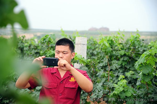 圖9:楊亞超用手機(jī)將葡萄病害或葡萄生長(zhǎng)的關(guān)鍵點(diǎn)拍攝下來(lái)。