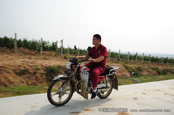 圖11:楊亞超每天都會(huì)花4個(gè)小時(shí)左右的時(shí)間,騎著摩托車,查看葡萄園。他每年在葡萄園的摩托車行程達(dá)20000余公里。