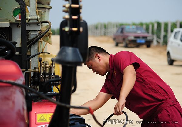 圖15:每次用文章來(lái)源中國(guó)酒業(yè)新聞網(wǎng)完機(jī)械后,楊亞超都要細(xì)心檢查保養(yǎng)。張?jiān)9窘曷氏纫M(jìn)、推廣國(guó)外先進(jìn)的葡萄機(jī)械化種植設(shè)備,提高葡萄種植效率。