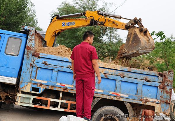 圖16:上午11點(diǎn),太陽(yáng)很毒,種植戶開始休息的時(shí)候,他開始指揮施工機(jī)械,進(jìn)行葡萄園區(qū)圍墻的建設(shè)。