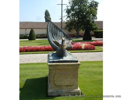 象征著龍船酒莊的雕塑靜坐在酒莊花園中