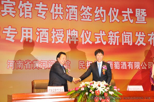 11月19日,河南省民權(quán)九鼎葡萄酒有限公司與河南省黃河迎賓館正式簽約,民權(quán)牌葡萄酒被確認為河南省國賓專用酒和河南省黃河迎賓館專供酒。