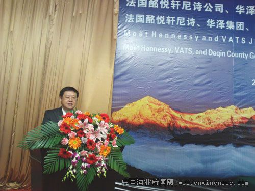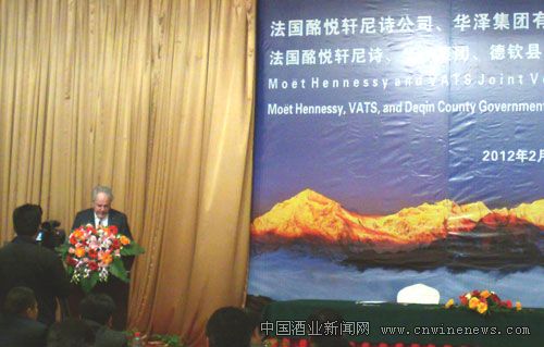 云南省迪慶州委書記張登亮及德欽縣黨政領(lǐng)導(dǎo)見證了本次簽約,法國酩悅軒尼詩集團(tuán)總裁克里斯托夫•納瓦爾與華澤集團(tuán)董事長出席了簽約儀式并共同簽署了合資協(xié)議。