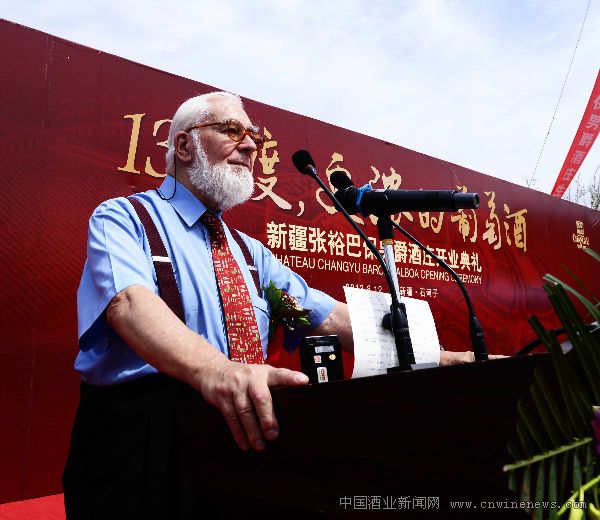 張裕新疆巴保男爵酒莊名譽莊主、首席釀酒師約翰.薩爾維伯爵在酒莊開業儀式