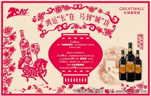 “中國年當然要喝我們自己的酒,長城馬年特標酒是葡萄酒和中國傳統(tǒng)文化結合的經(jīng)典代表。它不僅是一種更符合國人口味的時尚健康飲品,也代表了吉祥與成功的傳統(tǒng)馬文化,可以說是一瓶最適合在春節(jié)聚會上與親人朋友分享的好酒。“活動負責人表示。