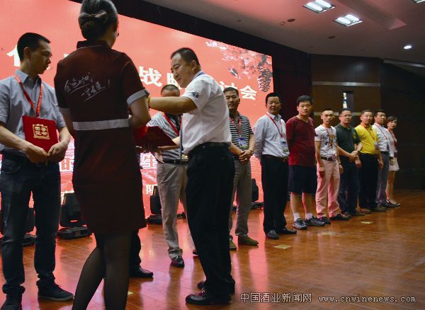 在會議現場,煙臺時代葡萄酒有限公司董事長姜述亭與營銷總監趙勇分別為經銷商們頒發了優秀經銷商、戰略合作伙伴、突出貢獻獎榮譽證書。