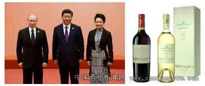 國慶招待宴會上使用的長城三星干紅葡萄酒和長城天賦葡園精選級干白葡萄酒