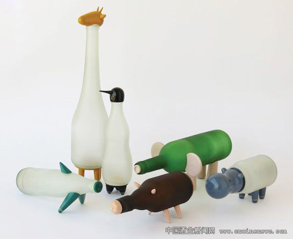 動物農(nóng)場(Animal Farm)是由印度女設(shè)計師 Nishi Chauhan 設(shè)計的一系列用廢酒瓶做成的動物臺燈,以廢物回收和再利用為主題,有趣而實用。