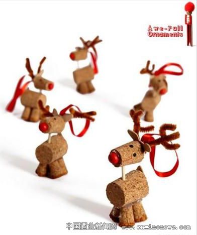 接下來,我們用大頭釘串上一個紅色的小絨球按進橡木塞,這樣,小鹿就有一個可愛的鼻子了。最后,用彩色細鐵絲把小領導圈文章來源中國酒業新聞網在小鹿的脖子上,大功告成了!
