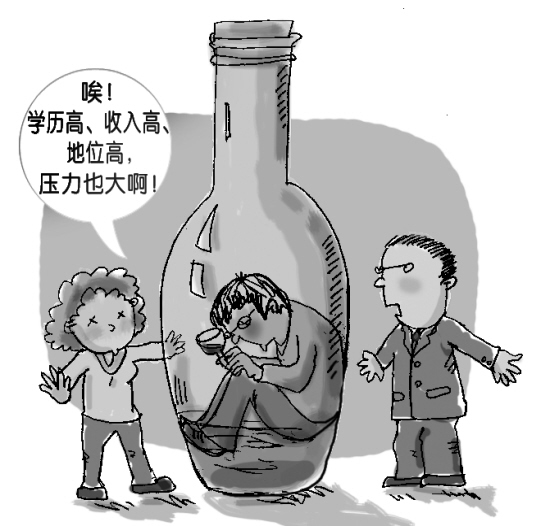 過去,“酒蒙”多是從事體力勞動或基層工作的人,而現在,高學歷、高收入、高地位的“三高”人群迅速增加。“高層的喝好酒,低層的喝孬酒,結果都一樣,全是酗酒”。同時,女性年輕酒人不斷增多,其中也以白領精英為主。