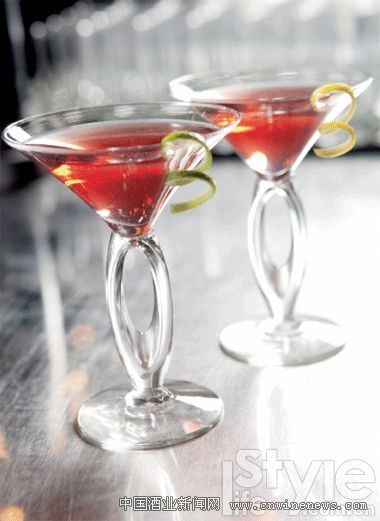 制作方法 覆盆子利口酒、蔓越莓汁二者合一倒入加冰的搖酒壺里,搖勻濾入冰凍的馬天尼杯中,滴入苦艾酒,最后裝飾青檸檬皮螺旋即可。