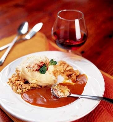 烤蘋果派白巧克力雪糕、熱黑巧克力醬VS可可甜酒