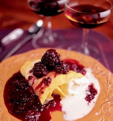 桑子醬的加入會恰到好處地讓它們兩者不會過干過膩,口味上更會給人帶出田園般的視覺效果。相配的同屬性的甜橙白蘭地加重了果香的比例,跟蛋皮牛奶雪糕首尾呼應,相得益彰。