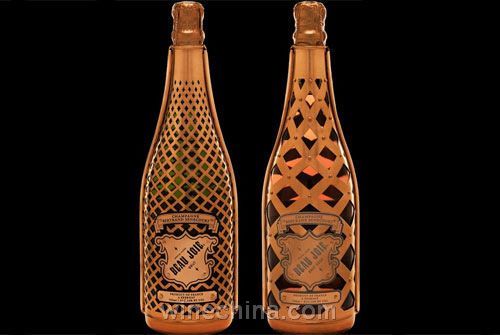 另外,瓶身以人工鑲上60 顆鉚釘,玫瑰流光從再生銅所交織的格子中透出來,不僅美觀還兼具環保,Beau Joie 香檳之后所提供的回收程序使瓶身的銅制裝飾可以重復利用,而銅制表面有助于延長香檳的冷藏狀態,并在開瓶時較不易滑手。