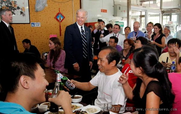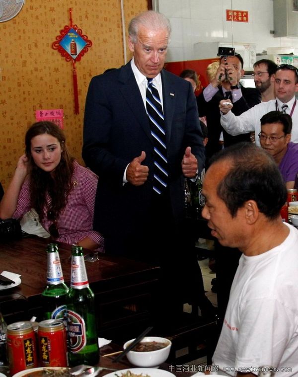 據美國駐中國大使館發布的消息,8月18日,拜登在美新任駐華大使駱家輝的陪同下,和孫女一起來到鼓樓附近的一家炒肝店文章來源中國酒業新聞網品嘗北京炸醬面,其間還熱情地和邊上其他顧客打招呼。拜登副總統一行5人點了5碗炸醬面,10個包子,拌黃瓜,涼拌山藥,涼拌土豆絲以及可樂等,總費用79元。拜登在結帳時對店主稱,給店里帶來了許多不方便,他掏出100元結帳,剩下的按照美國習慣作為小費。隨后,他還熱情地和顧客以及店員合影。
